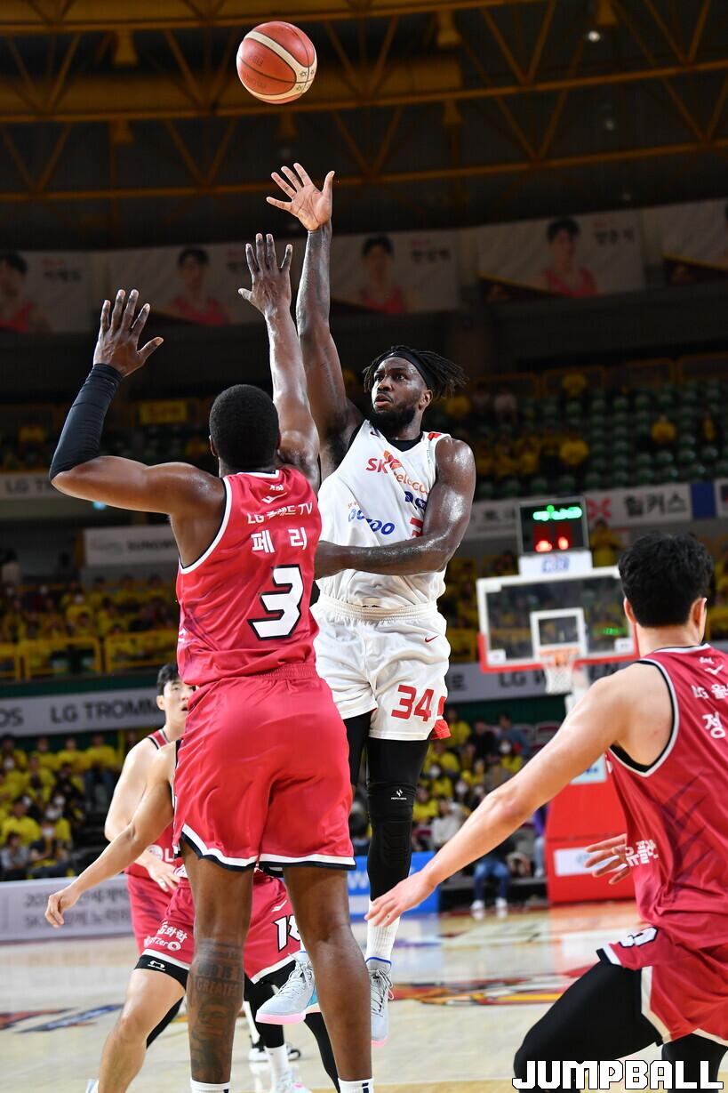 워니는 말 그대로 다양한 방식으로 득점쇼를 보여줬다. 탄탄한 몸에서 뿜어져 나오는 파워를 앞세워 묵직하게 포스트업을 치고들어가서 훅슛을 성공시킨 것을 비롯 골밑슛이 실패해도 연거푸 리바운드를 잡아낸 후 우겨넣기로 마무리지었다. 무엇보다 무서운 것은 ’플로터‘였다. 보통 SK에서 플로터 슛에 능한 선수를 언급하면 김선형을 떠올리기 십상이다. 실제로 김선형은 리그를 대표하는 플로터 장인으로 불리기도 한다.
