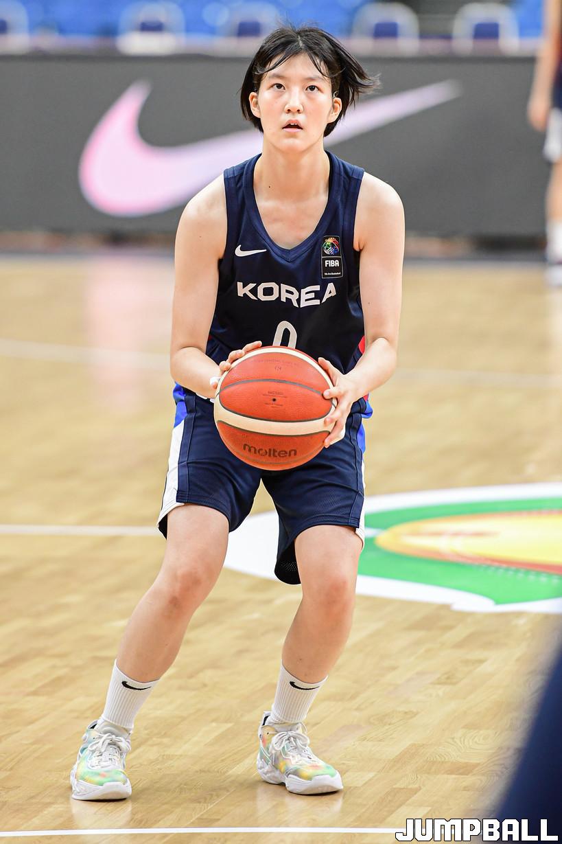 8일 헝가리 데브레첸 포닉스 아레나에서 열린 2022 FIBA U17 여자농구 월드컵 대회 2일차 훈련, 여자대표팀 김수인이 3점슛 훈련을 하고 있다.