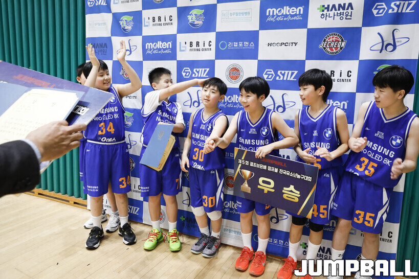아산 삼성은 2일 결초보은 다목적체육관에서 열린 '제5회 결초보은배 점프볼 전국 유소년 농구대회' U11 북면 LG와의 결승에서 20-18로 승리했다.