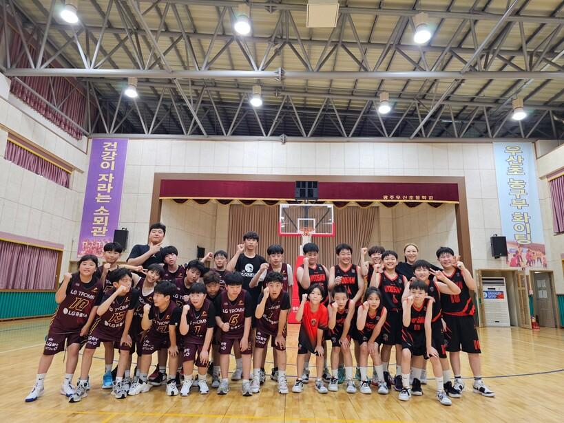 우산초 방문한 광주 맨투맨 농구교실, 엘리트 농구부와 함께 땀 흘리다