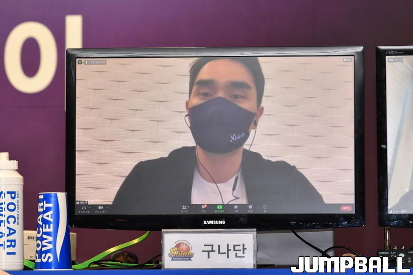 [JB포토] 화상연결로 출사표를 전하는 신한은행 구나단 감독