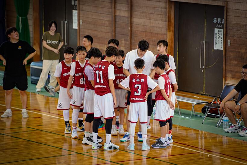 타국에서 외로운 싸움을 펼친 강남 삼성이지만 이날 반가운 손님들이 방문해 코트에서 함께했다. TOP농구교실 김시완 대표와 박준형 원장이 강남 삼성 유소년 응원차 일본을 찾았고 함께 벤치에 앉아 힘을 불어넣었다.