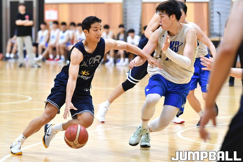 추일승 감독이 이끄는 남자농구대표팀은 오는 7월 12일부터 24일까지 인도네시아 자카르타에서 열리는 2022 FIBA 남자농구 아시아컵에 출전한다. 30일 진천국가대표선수촌 열린 단국대와의 연습경기에서 허훈이 골밑 중앙으로 돌파를 시도하고 있다.