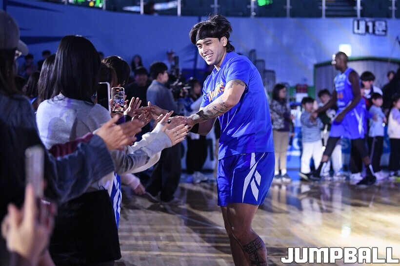 [점프볼=잠실/유용우 기자] 4일 잠실실내체육관에서 열린 2025-2026 LG전자 프로농구 서울 삼성과 원주 DB의 경기, 삼성 구탕이 팬들의 환호를 받으며 코트로 입장하고 있다.