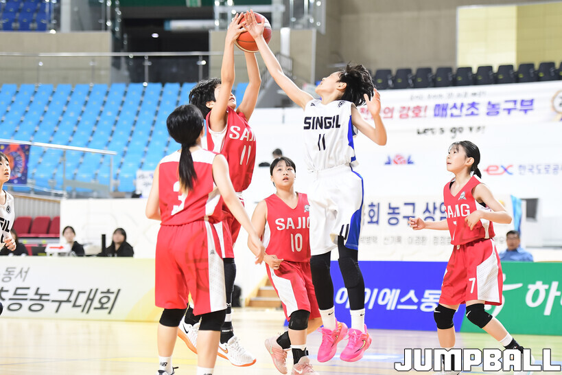 [점프볼=김천/박상혁 기자] 17일 김천체육관에서 열린 아이에스동서 제25회 협회장배 전국초등농구대회 4일차 서울신길초와 사직초 여초부 예선 경기, 서울신길초가 사직초에 30-17로 승리했다.