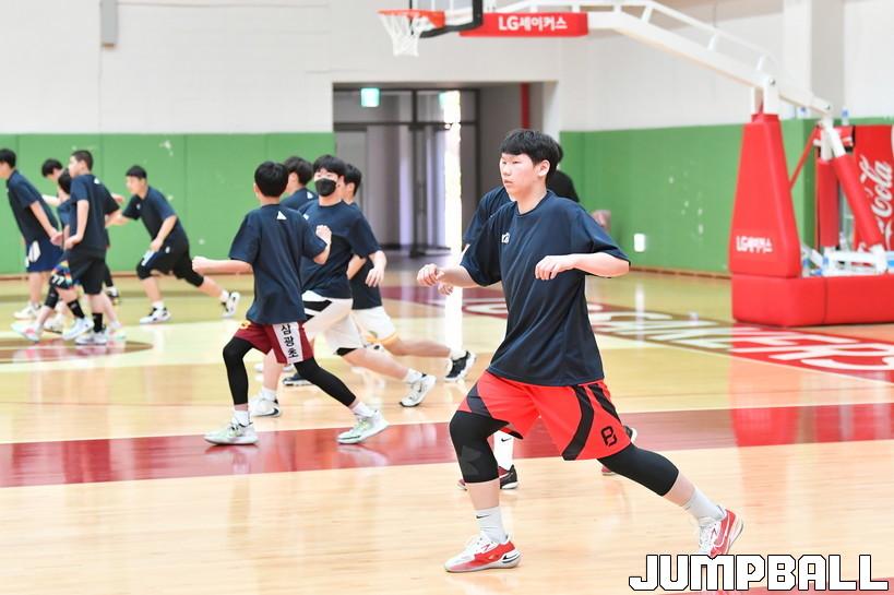 15일 이천 LG챔피언스파크에서 열린 2022 KBL 연고, 장신선수 트레이닝 캠프. KBL 연고, 장신선수 캠프에 참여한 선수들이 코치들의 지시에 따라 준비운동을 진행하고 있다.
