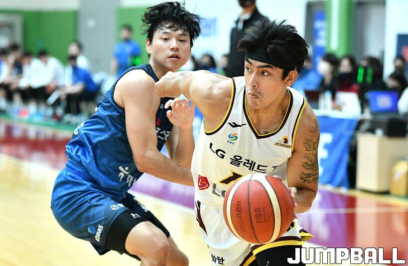 8일 이천 LG챔피언스파크에서 열린 2022-2023 KBL D-LEAGUE 한국가스공사와 LG의 경기, LG 구탕이 골밑 사이드로 돌파를 시도하고 있다.