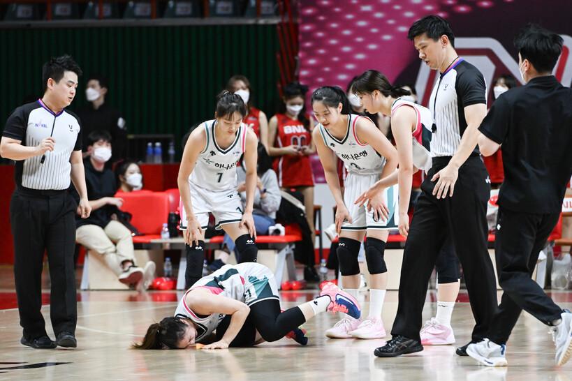 엎친 데 덮친 격이었던 하나원큐는 BNK썸과의 경기서 또 1명의 주축이 이탈했다. 평균 9.6점을 기록, 신지현(14.6점)과 정예림(11.4점)에 이어 팀 내 득점 3위였던 김애나마저 발목부상을 당했다.