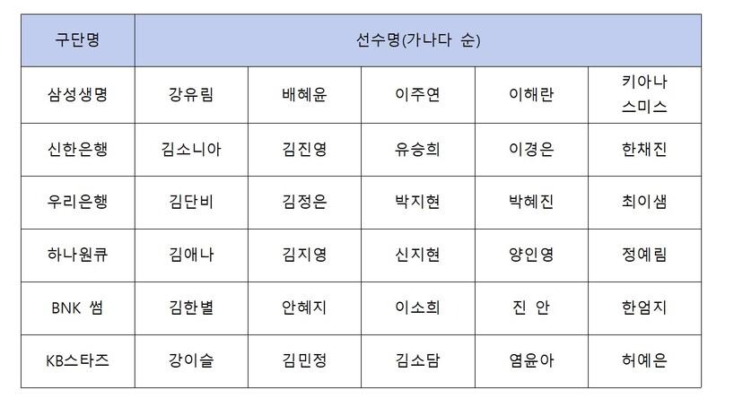*신한은행 SOL 2022-2023 여자프로농구 올스타 팬 투표 후보 명단*