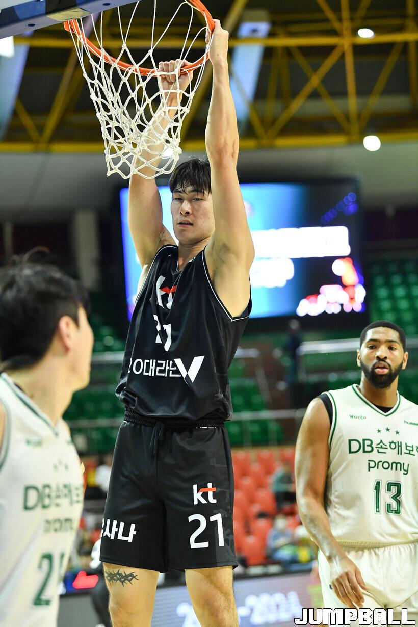 뒷심이 강한 쪽은 KT였다. 박인웅과 로슨에게 연거푸 득점을 허용했지만 흔들리지 않았다. 일데폰소가 결정적인 연속 3점슛을 성공시키며 KT의 리드를 안겼고, DB의 거센 추격을 막아내며 승리를 지켰다.