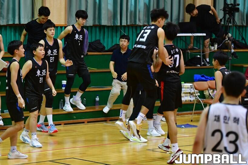 3경기 동아중과 호계중 경기는 이날 열린 중등부 16강 경기 중 가장 박진감 넘치는 경기였다. 3쿼터까지 열세에 몰렸던 동아중, 4쿼터 김승윤을 중심으로 추격을 시작했다. 그 결과 4쿼터 역전을 만들었고 끝까지 집중력을 유지하며, 리드를 지키는 데 성공했다. 동아중 김승윤은 30점 9리바운드 7어시스트를 기록했고 조현우(18점)와 조동훈(14점)이 득점에서 힘을 보탰다. 호계중 김지후는 3점슛 7개를 엮어 38점 5어시스트로 팀 공격을 이끌었지만 웃지 못했다.