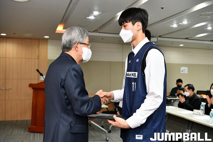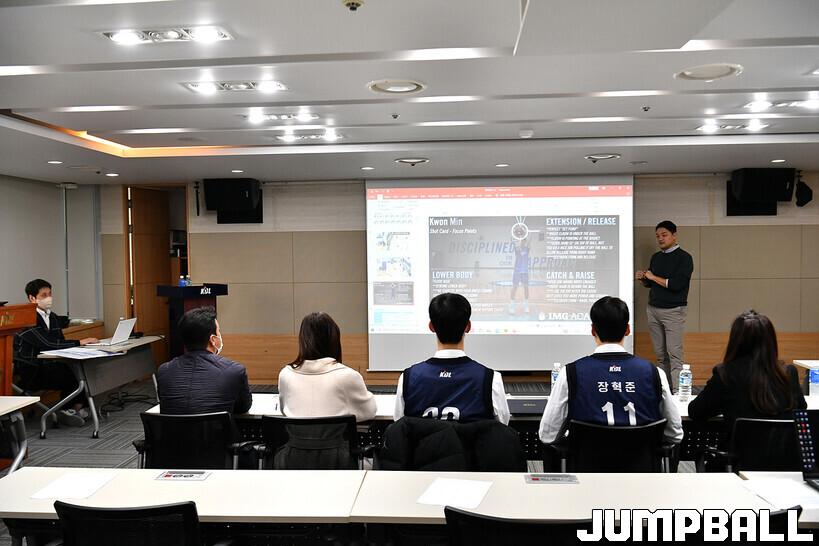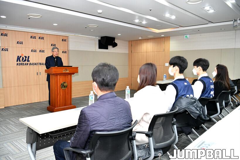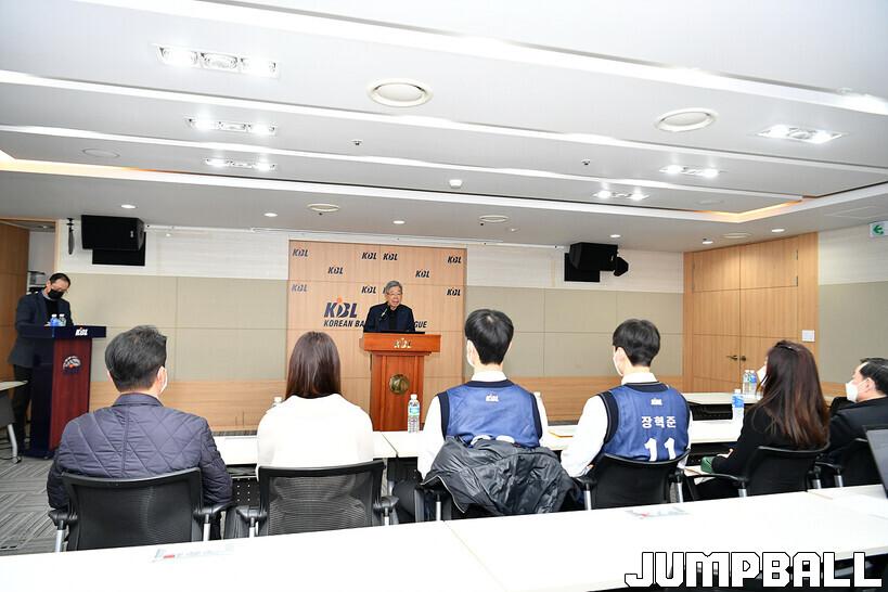 21일 KBL 센터 5층 교육장에서 2023 KCC와 함께하는 KBL 유망선수 해외연수 프로젝트 오리엔테이션으로 김희옥 KBL 총재의 인사말과 장혁준, 이제원 선수에게 인증서를 전달하고 IMG 브리핑으로 연수 관련사항 안내를 진행했다.