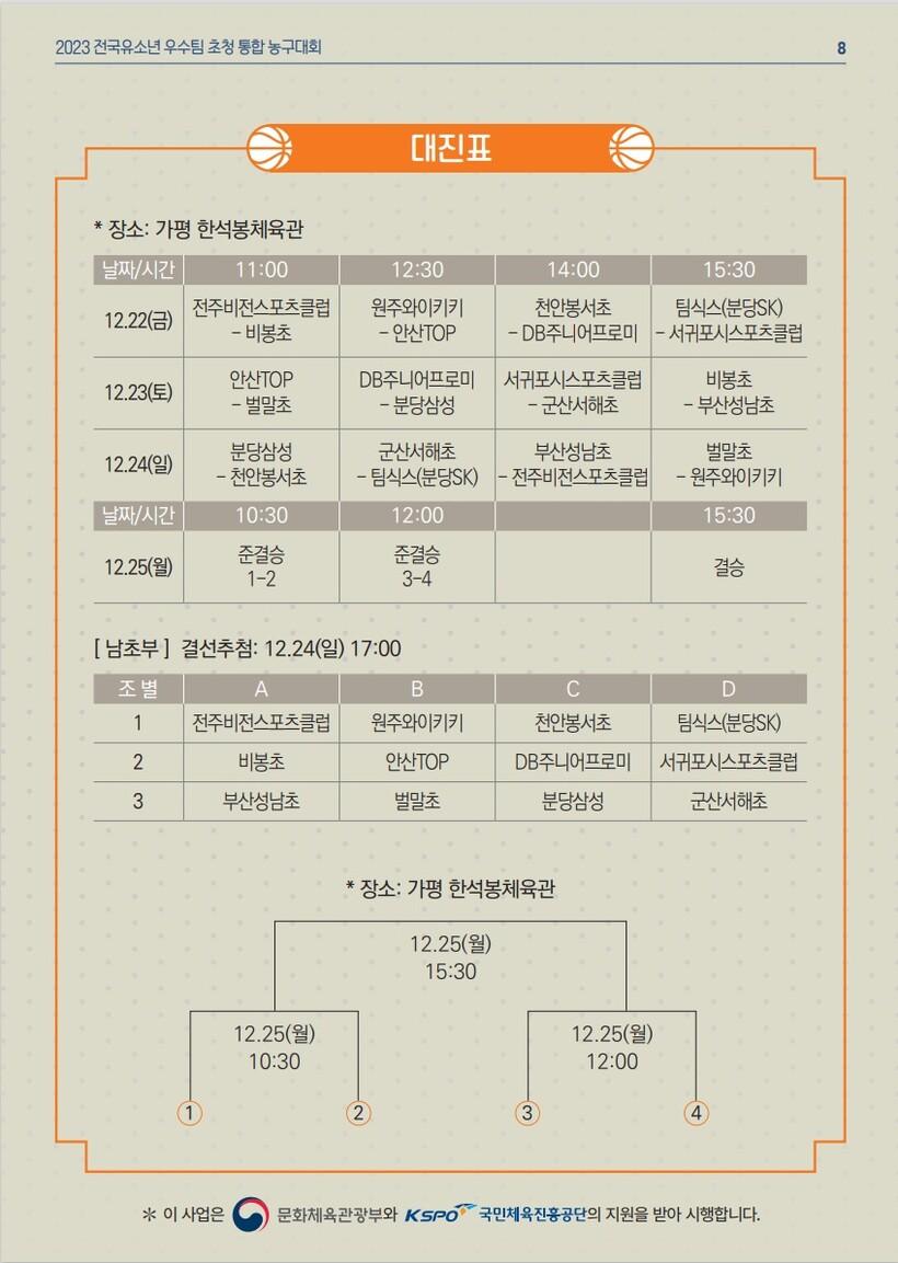 *2023 전국유소년 우수팀 초청 통합 농구대회 참가 팀 및 대진표*