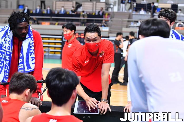 17일 경상북도 상주시 상주실내체육관에서 열린 2021 MG새마을금고 KBL컵 대회 수원 KT와 서울 SK의 4강 경기, SK 전희철 감독이 작전을 지시하고 있다.