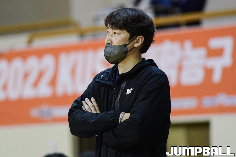 25일 단국대 천안캠퍼스 체육관에서 열린 2022 KUSF 대학농구 U-리그 단국대와 연세대의 경기, 단국대 석승호 감독이 경기를 지켜보고 있다.