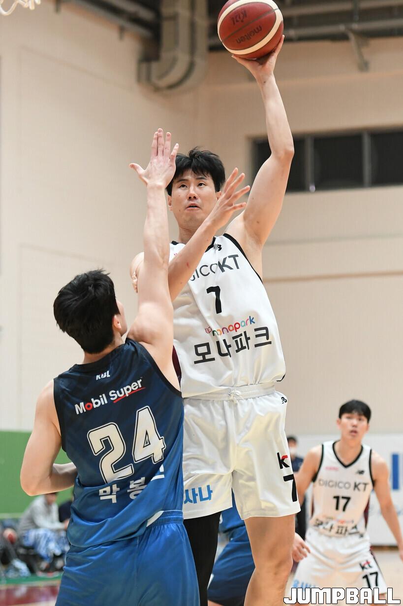 김민욱(28점 7리바운드 4어시스트)과 김준환(29점 3점슛 4개 5리바운드)이 맹활약하며 승리를 이끌었고, 박지원(16점 7리바운드 3어시스트)도 존재감을 뽐냈다. 2승 1패가 된 KT는 공동 2위로 올라섰다.