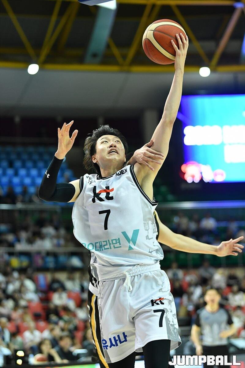 8일 군산월명체육관에서 열린 2023 MG새마을금고 KBL 컵대회 상무와 KT의 예선 경기, KT 최성모가 레이업을 올리고 있다. [점프볼=군산/유용우 기자]