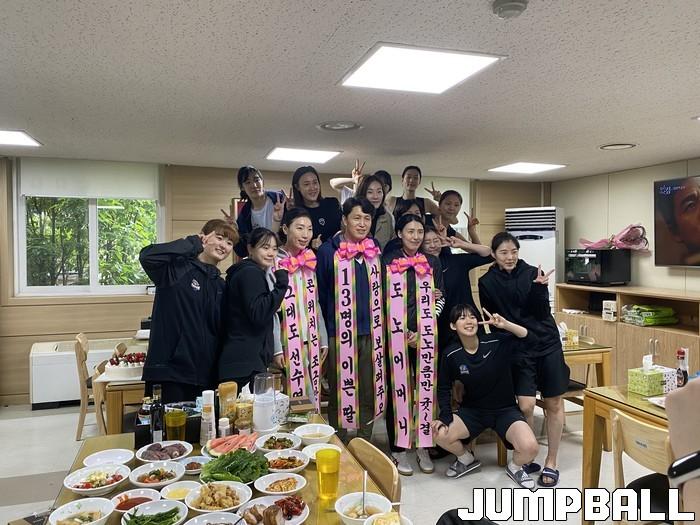 위성우 감독, 전주원, 임영희 코치도 선수들로부터 ‘13명의 이쁜 딸 사랑으로 보살펴주오’, ‘우리도 도노만큼만 귯~결’, ‘그대도 선수였잖아요, 콘 위치는 조금만 봐줘’라는 메시지가 새겨진 화환을 넘겨받아 목에 걸고 기분 좋은 기념 사진을 남겼다. 이번 이벤트를 준비한 박혜진은 “항상 스승의 날을 앞두고 뭘 해드려야 할지 고민을 많이 했던 것 같다. 작은 이벤트이지만 좋아해주셔서 너무 기분이 좋다. 이렇게라도 감사한 마음을 전할 수 있어서 뿌듯한 하루다”라고 이벤트 소감을 전했다.