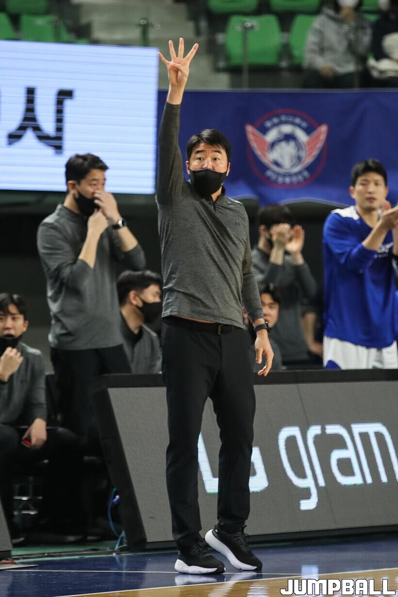 은희석 감독은 “뛰는 농구가 되어서 공격적인 부분은 도움이 된다. 김진영을 어릴 때부터 봐왔다. 수비가 문제”라고 했다.
