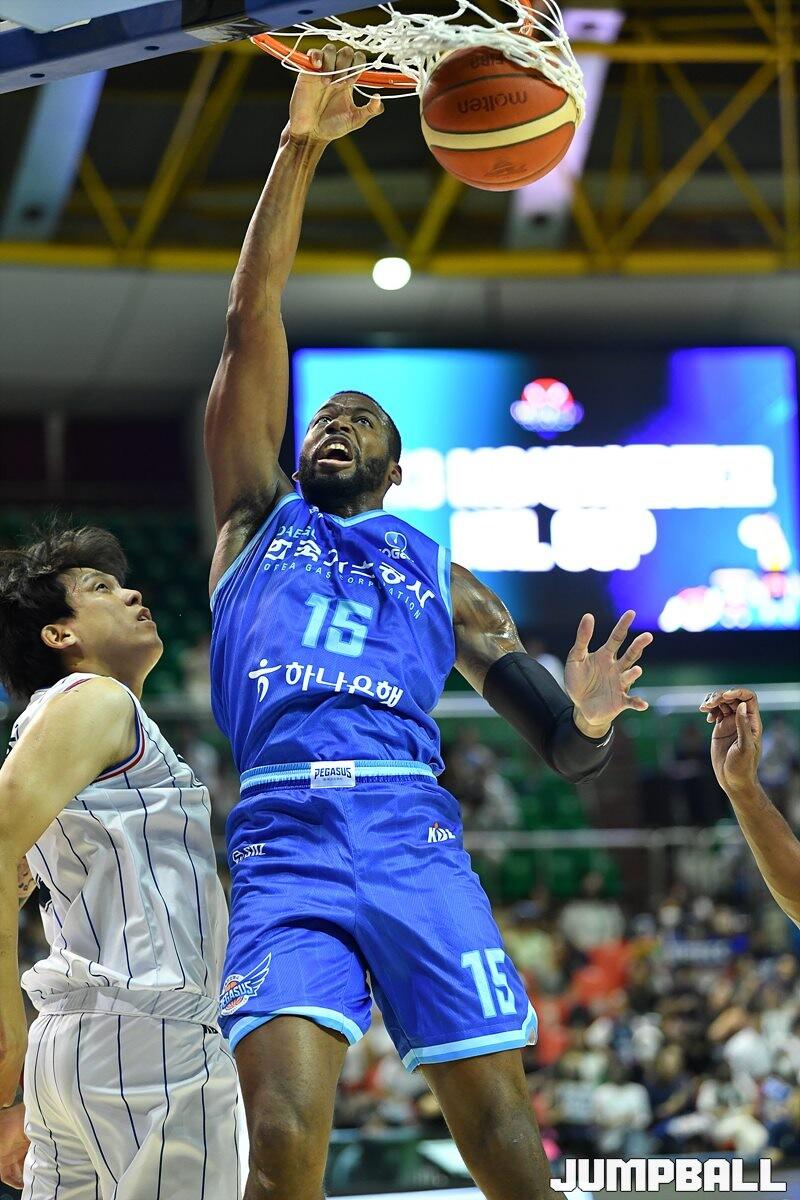 9일 군산월명체육관에서 열린 2023 MG새마을금고 KBL 컵대회 한국가스공사와 KCC의 예선 경기, 한국가스공사 앤쏘니 모스가 덩크를 성공하고 있다. [점프볼=군산/유용우 기자]
