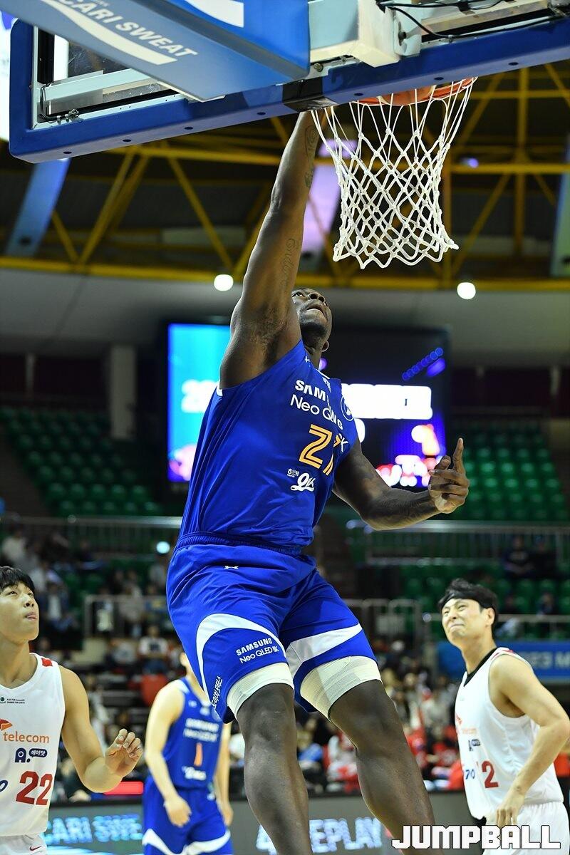 8일 군산월명체육관에서 열린 2023 MG새마을금고 KBL 컵대회 SK와 삼성의 예선 경기, 삼성 코비 코번이 덩크를 성공하고 있다. [점프볼=군산/유용우 기자]