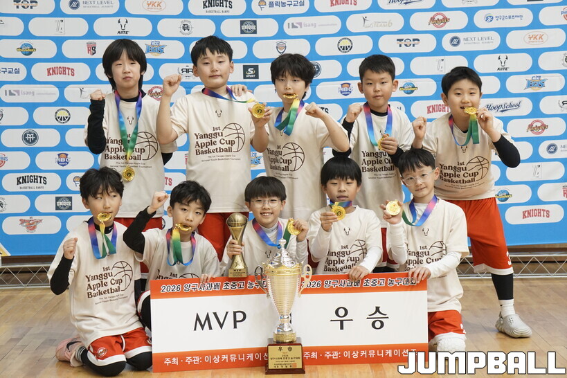 분당 SK 주니어 나이츠 농구교실(분당 팀식스)은 23일 양구 스포츠타운 A구장에서 열린 ‘제1회 양구사과배 전국 유소년 농구대회’ U8부 CP 결승에서 리바운드를 18-16으로 꺾고 정상에 올랐다.