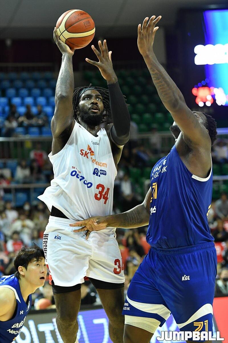 8일 군산월명체육관에서 열린 2023 MG새마을금고 KBL 컵대회 SK와 삼성의 예선 경기, SK 자밀 워니가 공격을 시도하고 있다. [점프볼=군산/유용우 기자]