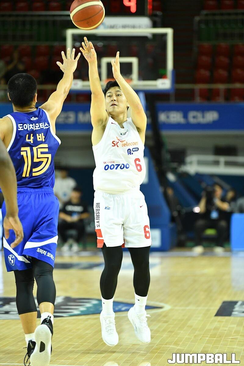 8일 군산월명체육관에서 열린 2023 MG새마을금고 KBL 컵대회 SK와 삼성의 예선 경기, SK 전성환이 공격을 시도하고 있다. [점프볼=군산/유용우 기자]