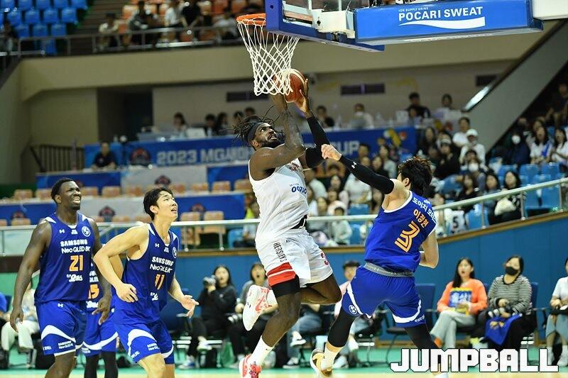8일 군산월명체육관에서 열린 2023 MG새마을금고 KBL 컵대회 SK와 삼성의 예선 경기, SK 자밀 워니가 공격을 시도하고 있다. [점프볼=군산/유용우 기자]