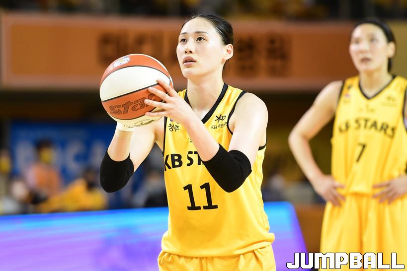 12일 청주실내체육관에서 열린 '삼성생명 2021-2022 여자프로농구 챔피언결정전 2차전' 청주 KB스와 아산 우리은행의 경기, KB 강이슬이 자유투를 시도하고 있다.