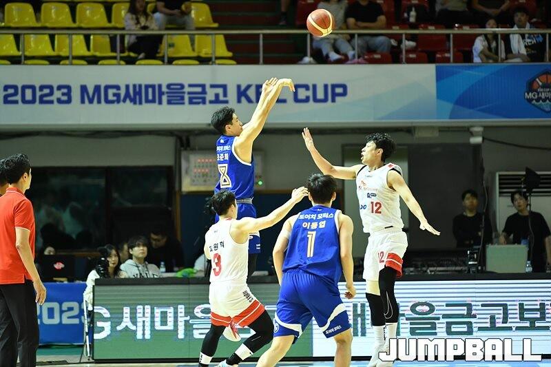 8일 군산월명체육관에서 열린 2023 MG새마을금고 KBL 컵대회 SK와 삼성의 예선 경기, 삼성 조준희가 공식경기 첫 득점을 성공하고 있다. [점프볼=군산/유용우 기자]