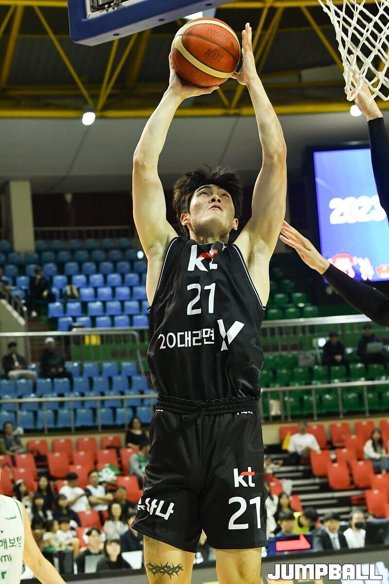 12일 군산월명체육관에서 열린 2023 MG새마을금고 KBL 컵대회 DB와 KT의 예선 경기, KT 이두원이 골밑 공격을 시도하고 있다. [점프볼=군산/유용우 기자]