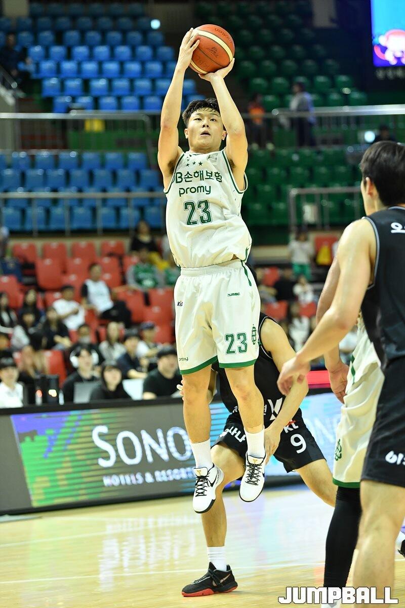 12일 군산월명체육관에서 열린 2023 MG새마을금고 KBL 컵대회 DB와 KT의 예선 경기, DB 박인웅이 공격을 하고 있다.