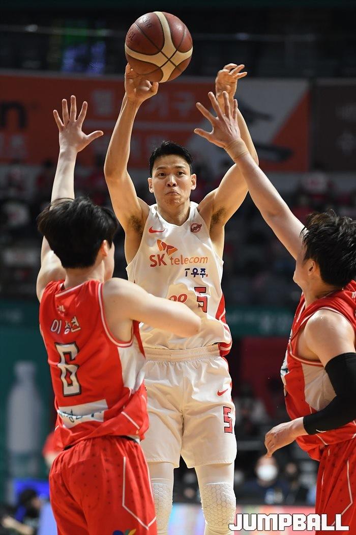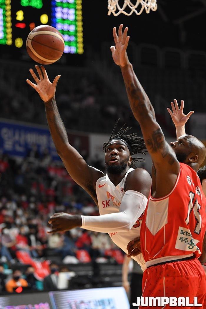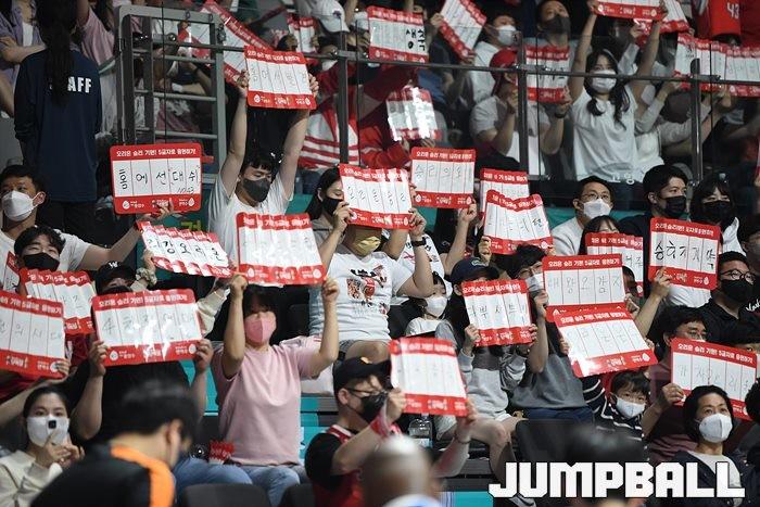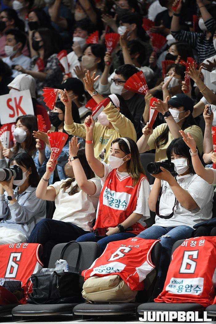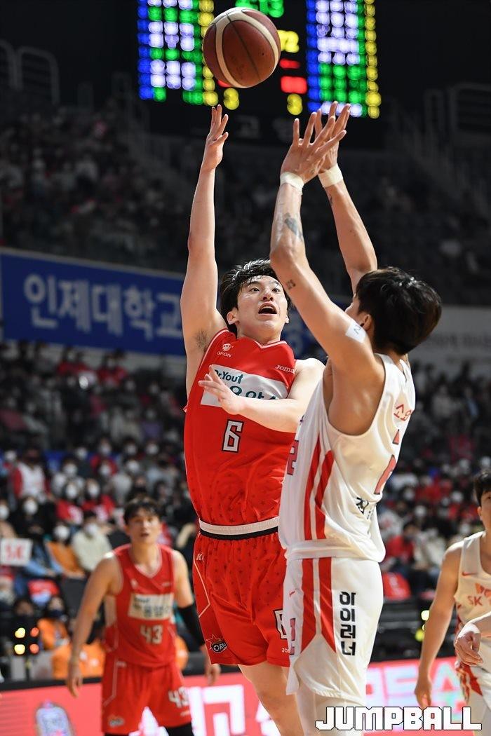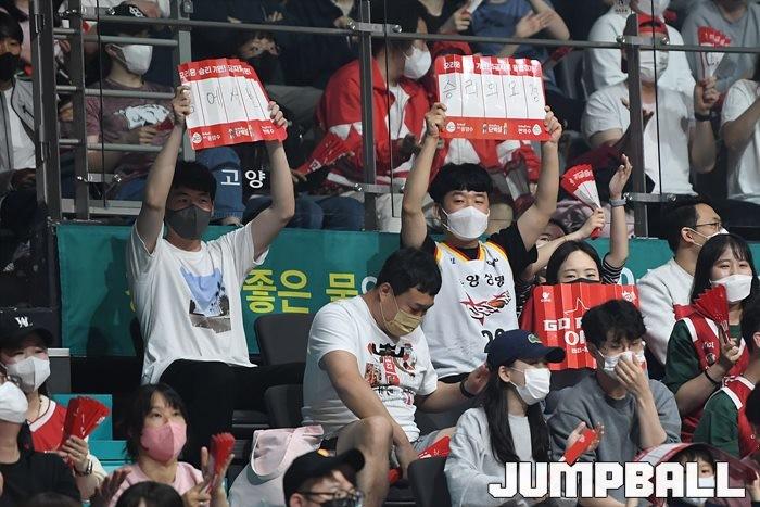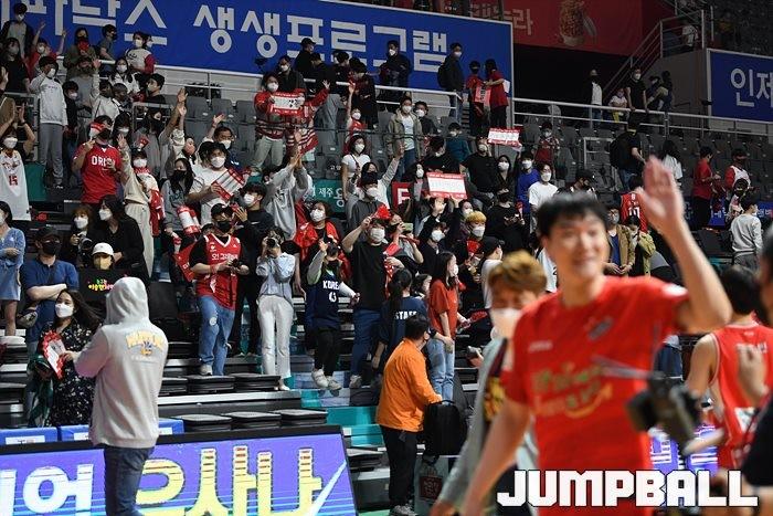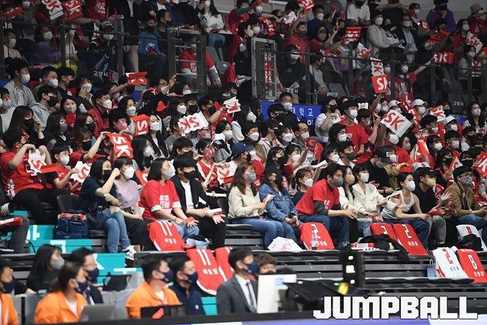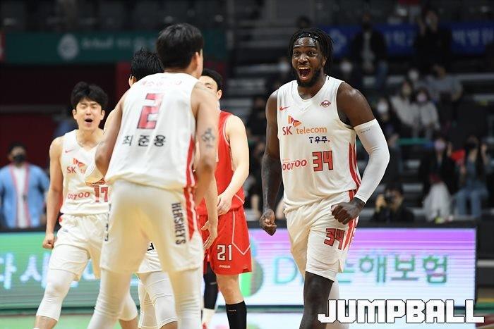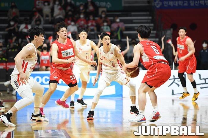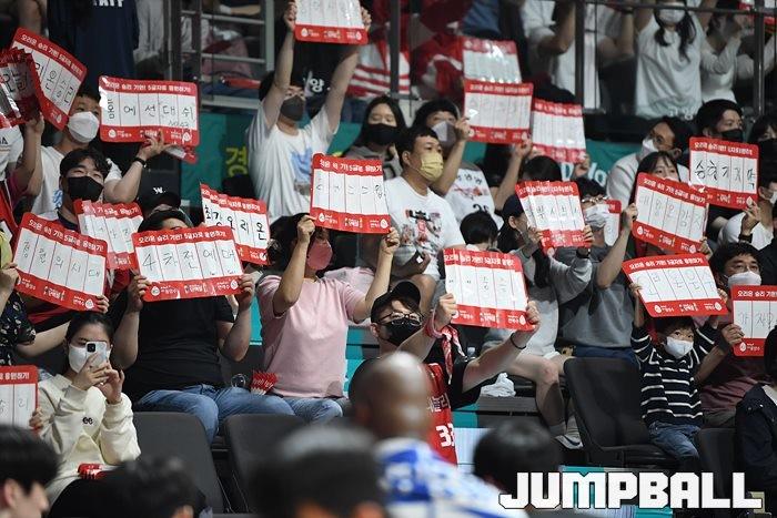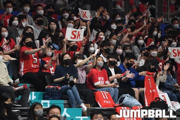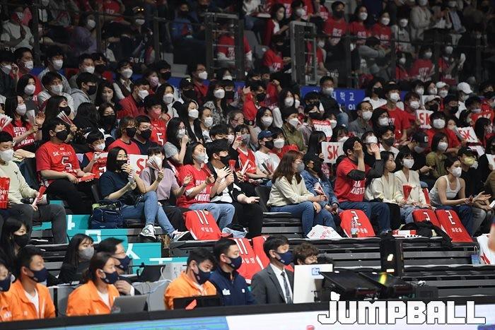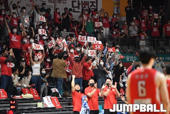 24일 고양실내체육관에서 열린 2021-2022 KGC인삼공사 정관장 프로농구 플레이오프 고양 오리온과 서울 SK의 플레이오프 3차전, SK가 86-81로 오리온에 승리하며 3연승으로 챔프전에 올라갔다.