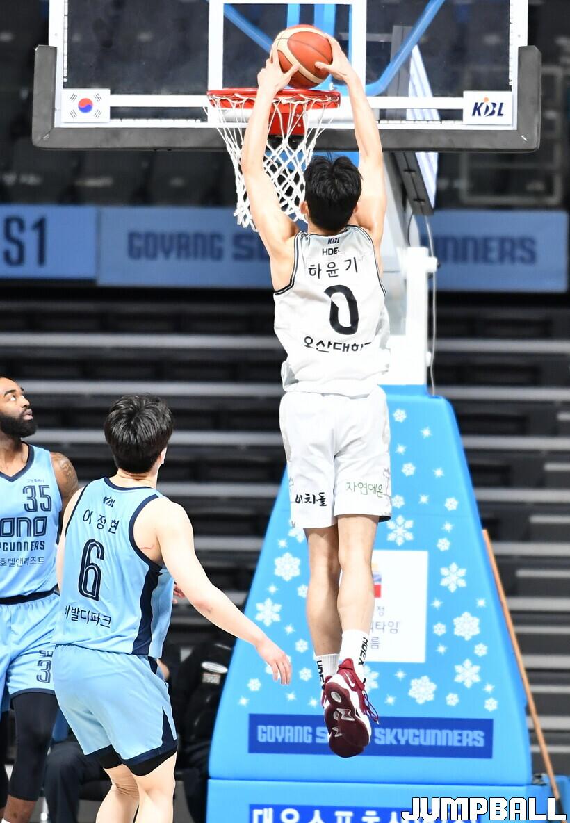 이정현, 백지웅, 김민욱에게 3점슛을 맞았지만 최성모와 정성우가 반격에 성공, KT는 하윤기의 마무리 득점에 힘입어 43-47로 전반을 마쳤다.