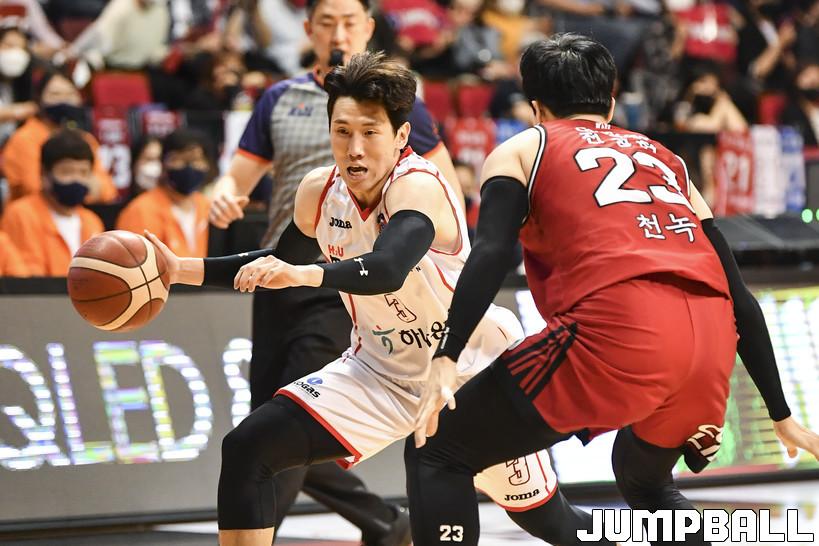 12일 안양실내체육관에서 열린 2021-2022 KGC인삼공사 정관장 프로농구 플레이오프 6강 안양 KGC와 대구 한국가스공사 경기에서 KGC가 79-61로 승리를 거뒀다. KGC-한국가스공사 플레이오프 6강 2차전 경기화보.