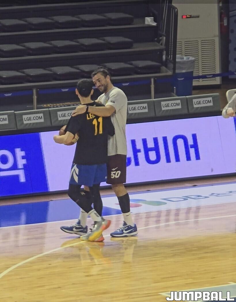 마레이는 경기 전 반가운 옛 동료를 만났다. 어느덧 베테랑이 된 이관희(삼성)였다. 마레이는 KBL에 데뷔한 2021-2022시즌부터 2023-2024시즌까지 이관희와 한솥밥을 먹으며 우정을 쌓은 바 있다. 우정의 깊이는 격한(?) 인사를 통해서도 엿볼 수 있었다. 백허그로 인사를 나눈 후 연신 이관희를 도발했던 마레이는 이내 하이파이브하며 서로를 응원했다.