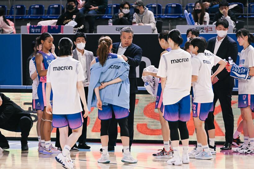 임근배 감독이 이끄는 용인 삼성생명은 21일 용인체육관에서 열린 부천 하나원큐와의 신한은행 SOL 2022~2023 여자프로농구 정규리그 홈경기에서 78-62로 승리했다. 2위 삼성생명은 2연패 위기에서 벗어나 3위 부산 BNK썸과의 승차를 1경기로 벌렸다.
