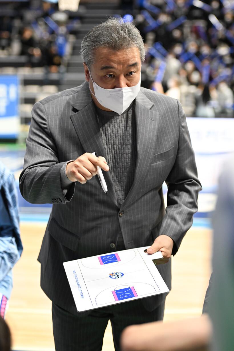 [점프볼=아산/최서진 기자] 임근배 감독은 패했지만, 잘했다며 선수들을 격려했다.
