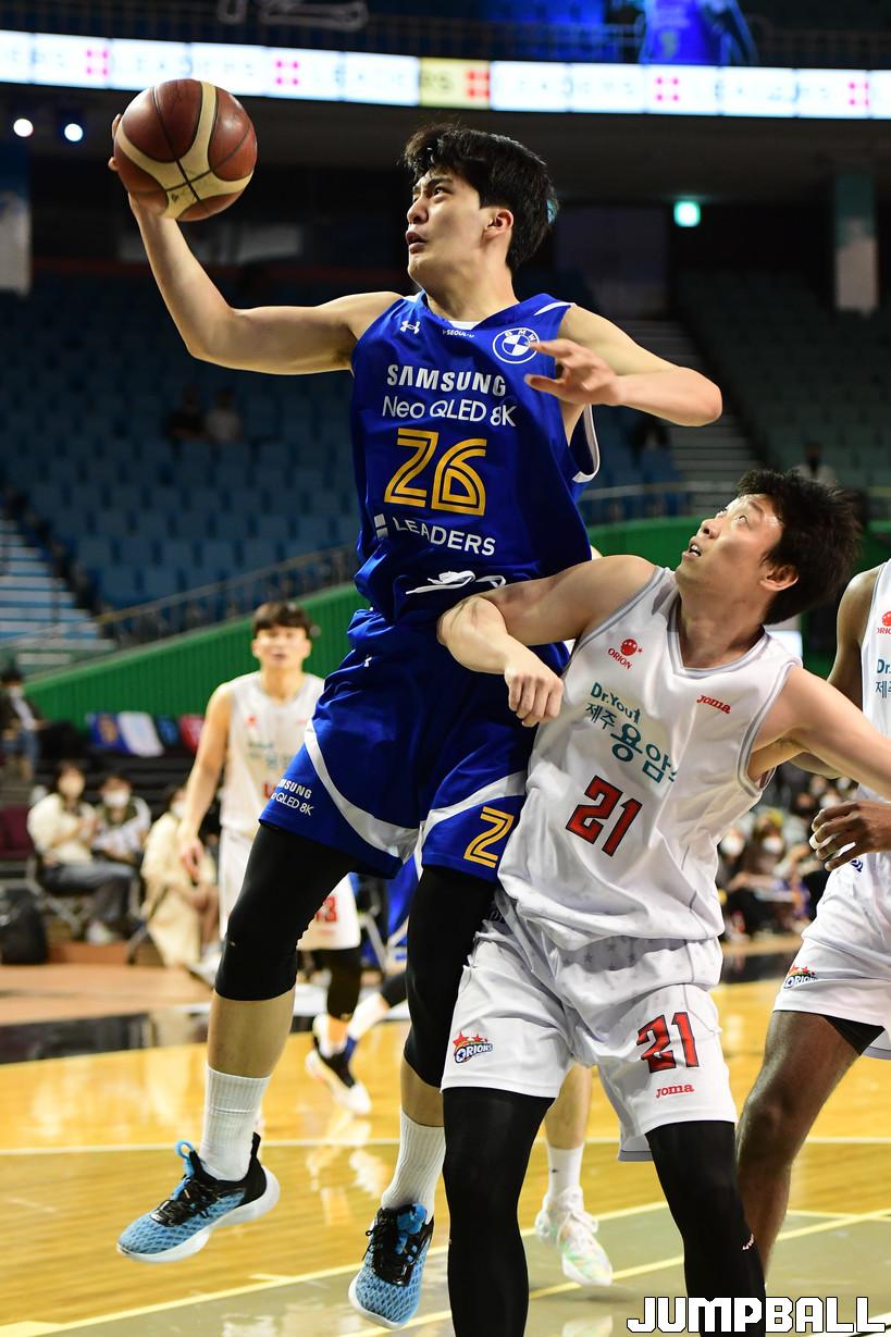 5일 잠실실내체육관에서 열린 2021-2022 KGC인삼공사 정관장 프로농구 서울 삼성과 고양 오리온의 경기, 삼성 차민석이 리바운드를 잡아내고 있다.