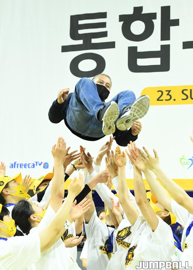 청주 KB스타즈는 지난 14일 아산이순신체육관에서 열린 아산 우리은행과의 삼성생명 2021~2022 여자프로농구 챔피언결정전 3차전에서 78-60으로 이겼다. 시리즈 전적 3승 무패를 기록한 KB스타즈는 통산 2번째 챔피언결정전 우승을 따냈다.