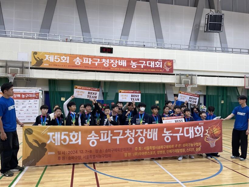 지난 7일과 8일 양일간 송파구체육문화회관에서 열린 제5회 송파구청장배 농구대회가 성황리에 폐막했다. U9부, U10부, U11부, U12부 등 4개 종별 총 20팀이 나서 기량을 맘껏 뽐냈다.