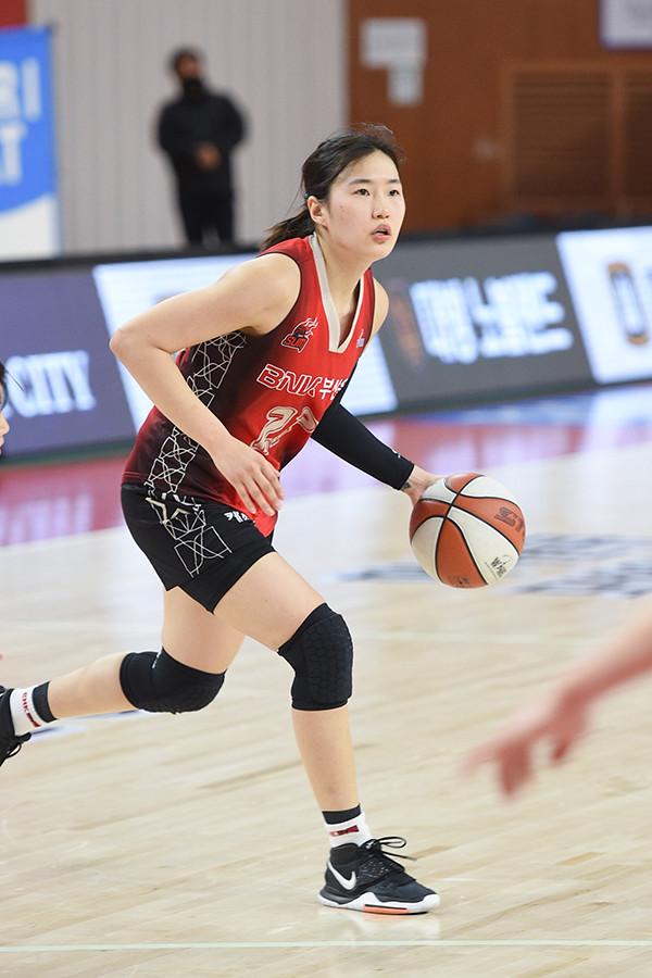 [점프볼=부산/임종호 기자] 생일을 맞은 부산 BNK 구슬(26, 180cm)이 맹위를 떨치며 팀 승리의 견인차 노릇을 해냈다.