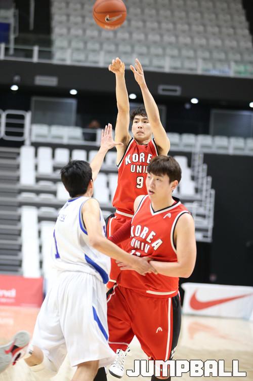 고려대 공격의 선택은 이종현(205cm, C)과 강상재(201cm, F)가 아닌 정희원이었다. 정희원은 경기 초반 특유의 탄력 있는 모습으로 속공을 마무리 했고, 2개의 3점슛을 터트리는 등 팀 공격을 이끌었다.
