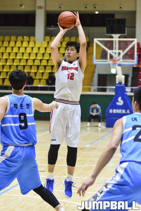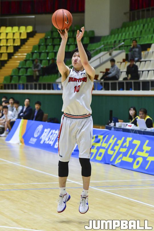 무룡고는 1쿼터를 29-14로 앞섰다. 백지웅이 1쿼터에만 3점슛 4개를 폭발시켰다. 2쿼터에도 무룡고는 백지웅의 외곽포를 중심으로 염재성(182cm,G)이 지원사격을 가했다. 용산고도 박준형(196cm,F)과 유기상(190cm,F)의 득점으로 추격했지만, 무룡고는 백지웅의 외곽포가 또 한 번 뿜어져 나왔다. 전반 점수 43-35.