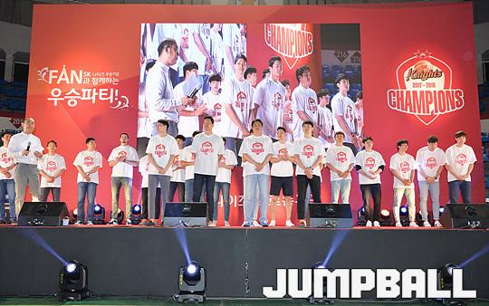 [점프볼=잠실학생/민준구 기자] 18년 만에 프로농구 왕좌에 앉은 SK가 팬과 함께 럭셔리한 우승 파티를 열었다.