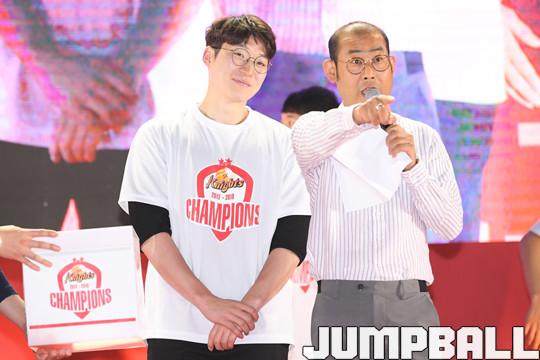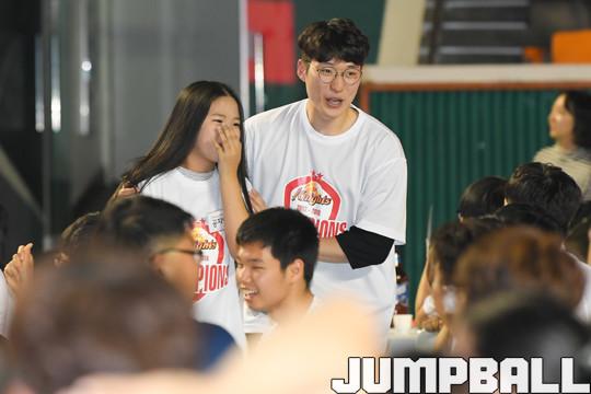 7일 잠실학생체육관에서 서울 SK의 2017-2018시즌 챔피언결정전 우승을 기념하기 위해 ‘FAN과 함께하는 우승파티’가 열렸다. 이날 자리에 참석해 팬들과 즐거운 시간을 보낸 최원혁은 상무 탈락의 아쉬움을 씻기 위해 다음 시즌 활약을 예고했다.