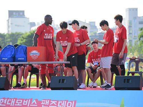 울산 현대모비스가 26일 울산 태화강체육공원에서 연고지 팬들과 2018 현대모비스 팬즈데이를 개최했다. 팬들과 걷기대회를 한 후 신인선수 장기자랑, 토크 콘서트 등 팬들과 호흡할 수 있는 다양한 행사가 마련된 가운데 양동근, 함지훈, 이대성, 전준범 등 현대모비스 선수단이 함께했다. 새 시즌을 함께하는 리카르도 라틀리프도 한걸음에 달려왔다.