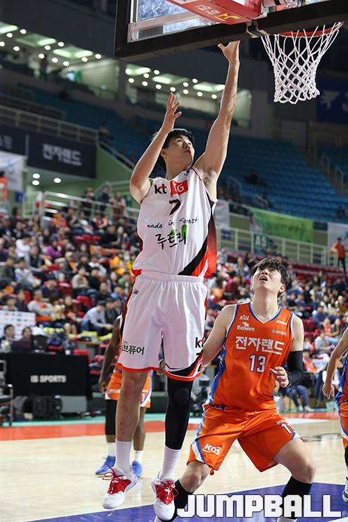 하지만 KT는 경기 초반싸움에서 김민욱의 분전으로 분위기를 가져왔었다. 1쿼터 김민욱은 연속으로 안정적인 골밑득점과 정확한 3점슛까지 꽂아 넣으면서 1쿼터에만 11득점을 퍼부었다. 2쿼터 들어서면서 양홍석의 패스를 받아 컷인 득점을 올리며 이번시즌 개인 최다 득점 기록을 갈아 채웠다.