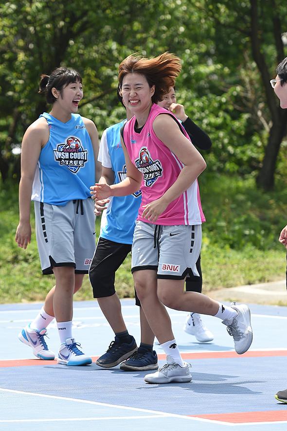 15일 경기도 평택 에바다 장애인 종합복지관에서 열린 W 위시코트 시즌2. 인천 신한은행(김이슬, 김연희, 한엄지, 김아름), 부천 KEB하나은행(고아라, 신지현, 김지영, 최민주), 부산 BNK(구슬, 안혜지, 홍소리, 정유진) 대표선수들이 참석해 복지관 아이들과 함께 새롭게 만들어진 코트에서 농구 게임을 펼쳤다.